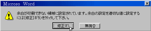 余白が印刷できない……のメッセージが出てきたときは、[修正]を選択します。