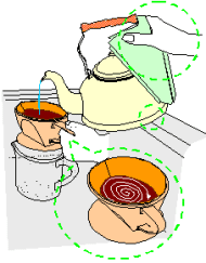 | シンク(流し)の縁などの台を使うと、余裕をもって淹れることが出来ます。 |