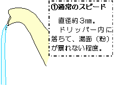 失敗しやすいことは、湯温が高過ぎて苦味が強くなり過ぎたり、スピードが早過ぎてコクのない水 |