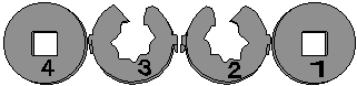 (ブレードの1から順にシャフトに挿入する。1と4のブレードはシャフトの角張った部 |